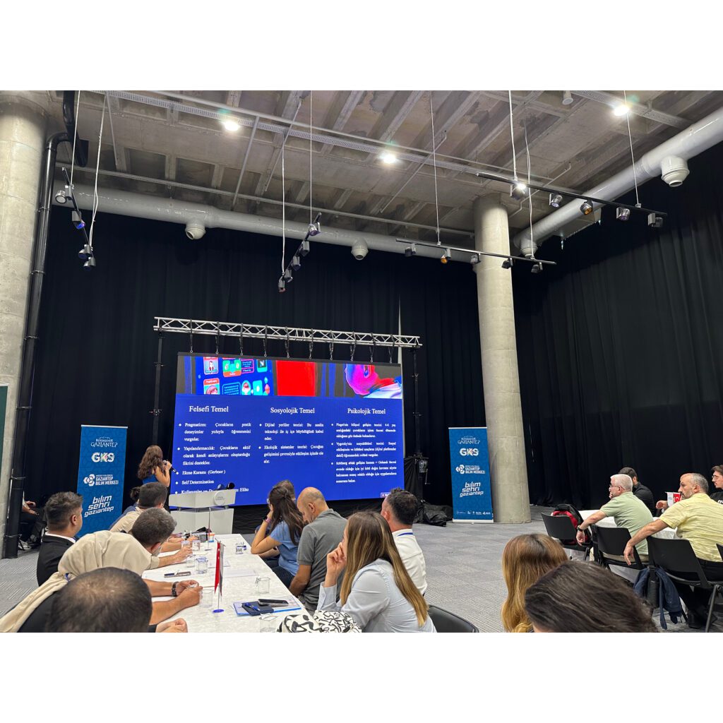 Çalıştay kapsamında, çocukların dijital ortamlarla sağlıklı bir ilişki kurabilmesi, ekran süresi yönetimi, dijital bağımlılıkla mücadele, bilinçli medya kullanımı ve psikososyal gelişimleri gibi kritik konular tartışıldı. Hasan Kalyoncu Üniversitesi Görsel İletişim Tasarımı Bölümü’nden Arş. Gör. Leyla TURĞAL, bu alanda atılması gereken adımları belirlemek amacıyla kavramsal çerçevenin oluşturulmasına liderlik ederek oturum başkanlığı görevini üstlendi.